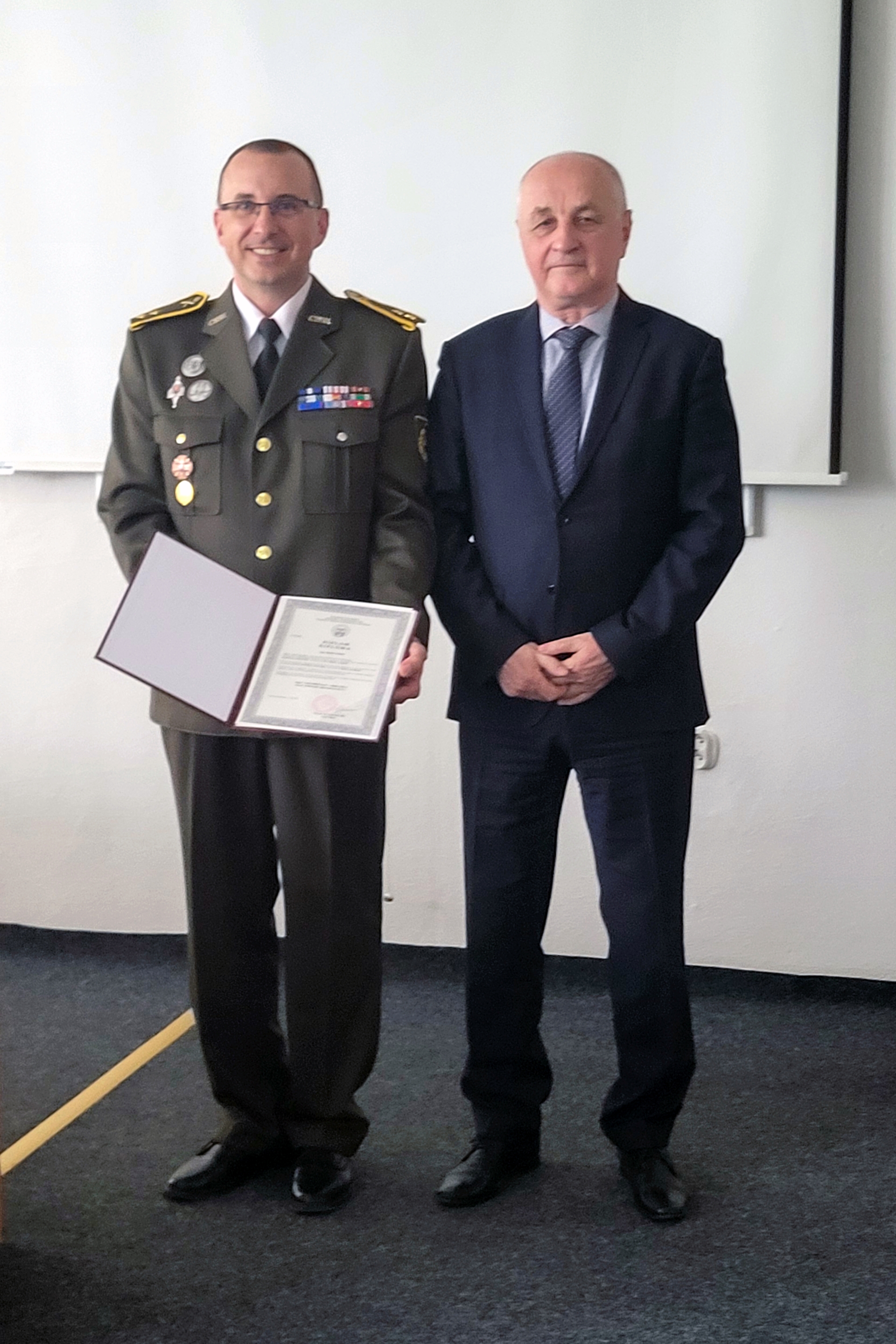 Na záver predseda komisie odovzdal pplk. Vajdovi diplom a poprial mu mnoho ďalších úspechov na poli vedy aj pedagogickej činnosti.