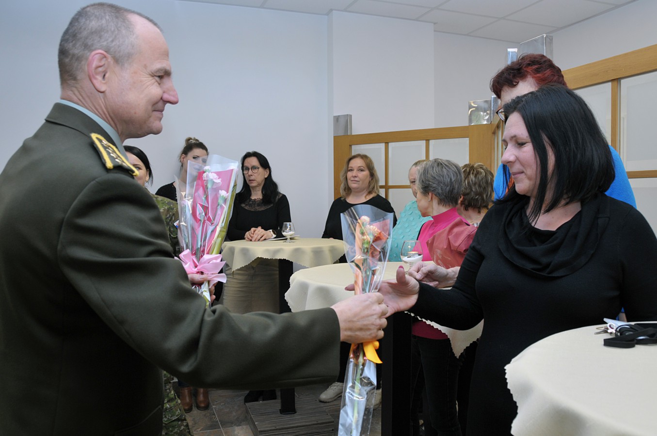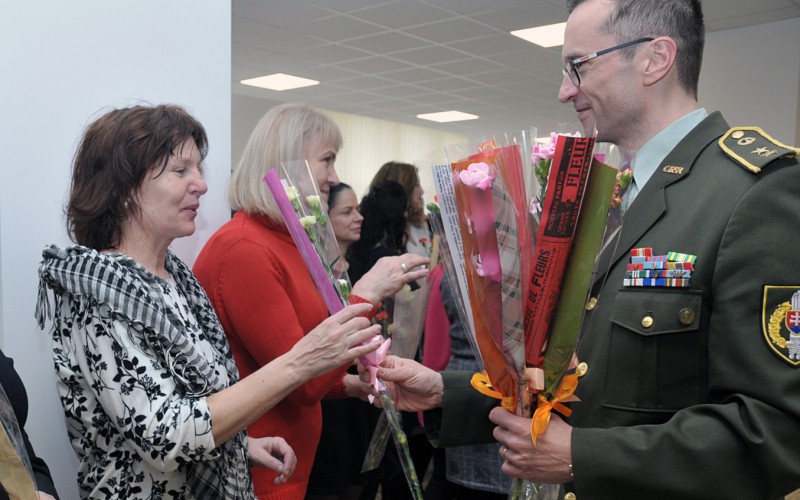 Funkcie gratulanta sa ujal rektor plk. gšt. Aurel Sabó, ktorý spolu so svojimi kolegami poprial ženám krásny sviatočný deň a odovzdal im malú pozornosť v podobe kvetu a sladkého prekvapenia.