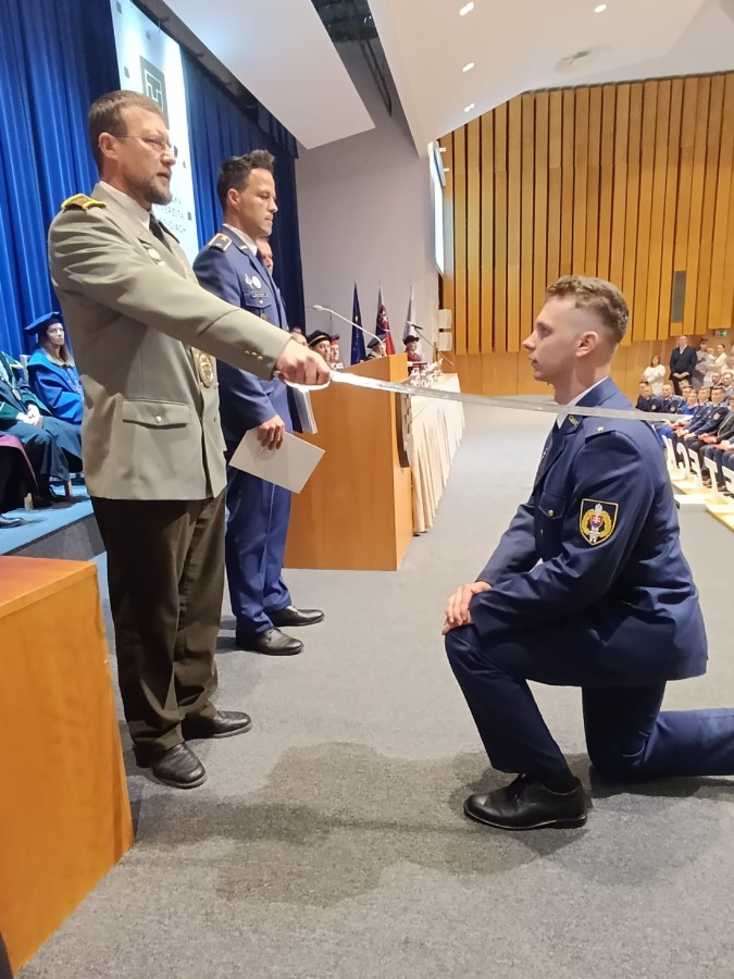Slávnostnej promócie sa zúčastnila delegácia AOS na čele s prorektorom pre vzdelávanie plk. doc. Ing. Michalom Turčaníkom, PhD., ktorý čerstvých absolventov zároveň pasoval do prvej dôstojníckej hodnosti – poručík.