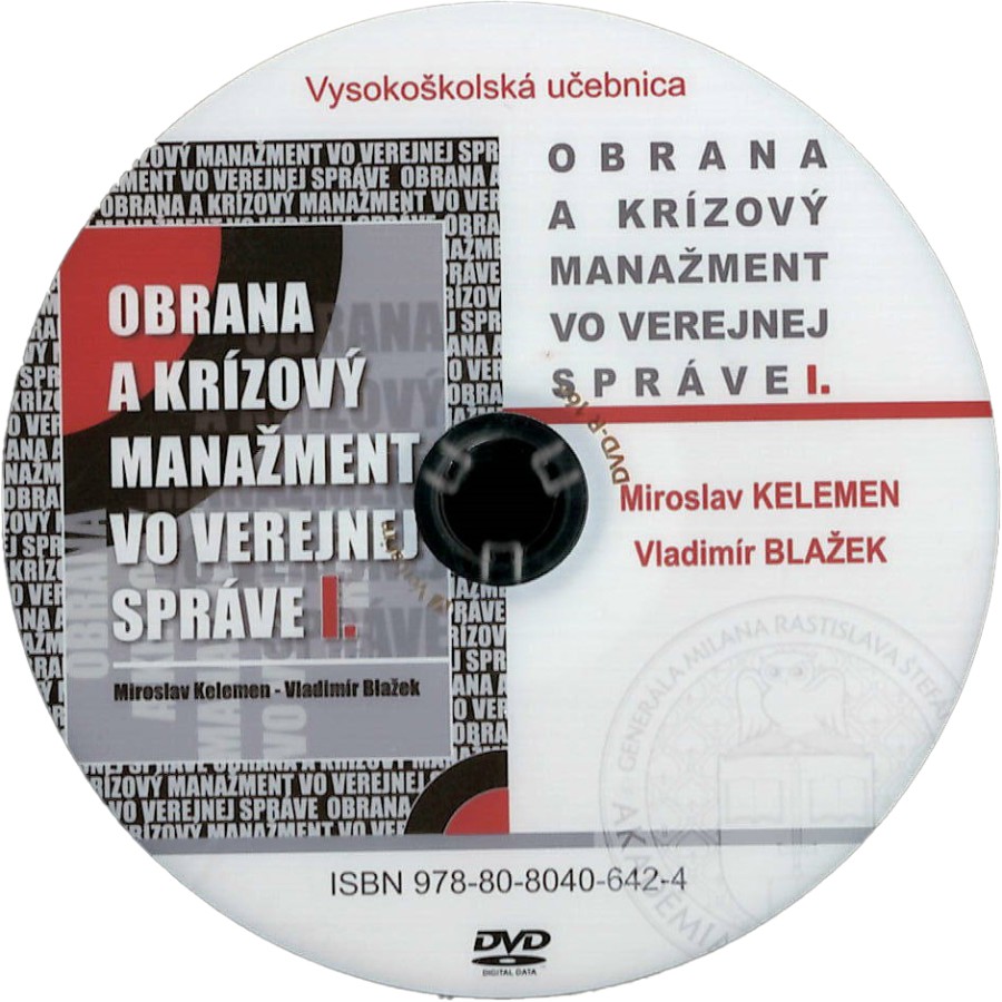 KELEMEN, Miroslav a Vladimír BLAŽEK. Obrana a krízový manažment vo verejnej správe I: vysokoškolská učebnica [CD-ROM]. 2. doplnené a aktualizované vydanie. Liptovský Mikuláš: Akadémia ozbrojených síl generála Milana Rastislava Štefánika v Liptovskom Mikuláši, 2023. ISBN 9788080406424.