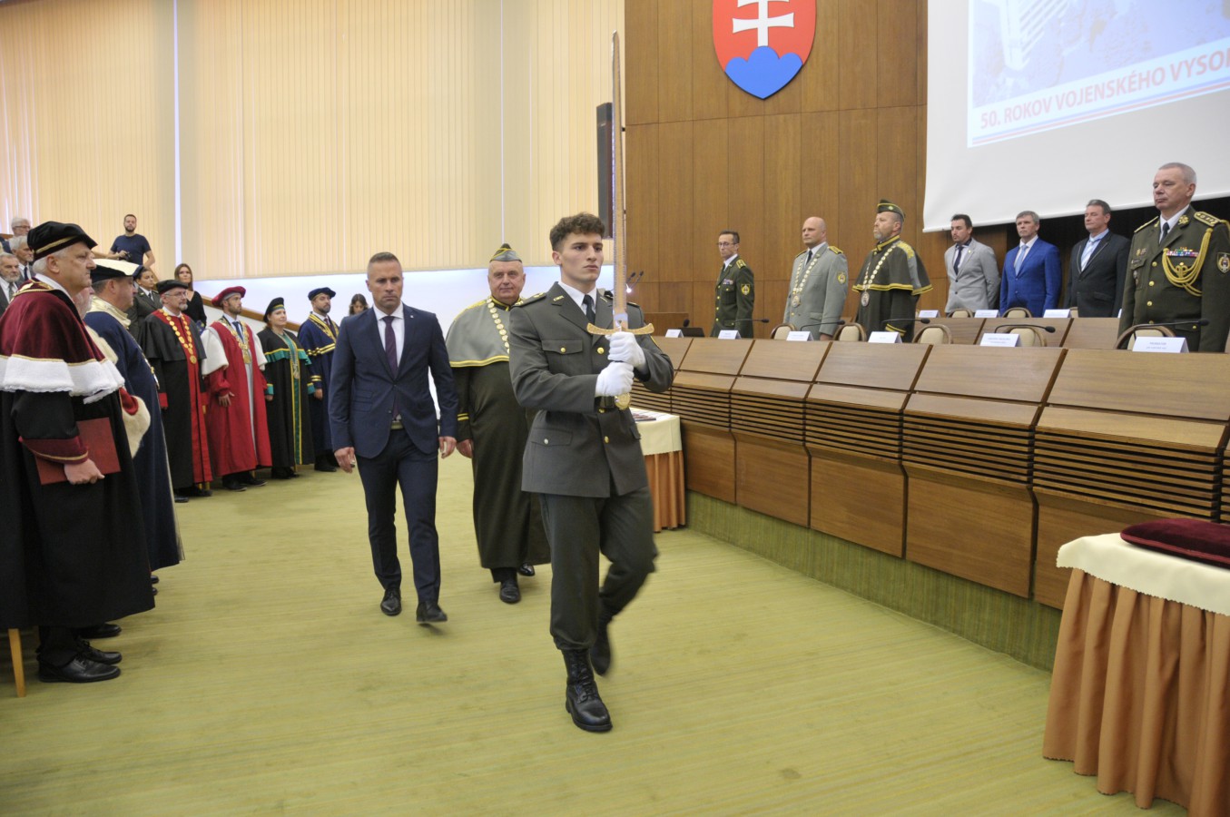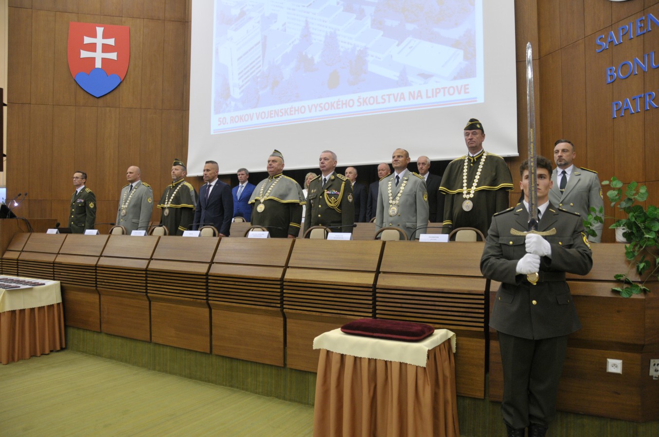 The highest officials of the Ministry of Defence, state administration, local and regional self-government and the diplomatic corps took place at the celebration. The invitation was accepted by the State Secretary of the Ministry of Defence Marian Majer, the Deputy Chief of the General Staff of the Armed Forces of Slovak Republic, Maj. Gen. Peter Babiar, Head of the Zilina self-governing region Erika Jurinova, Mayor of Liptovský Mikulas Jan Blchac, members of the academic senate and rectors of universities, former rectors, officials and employees of the Academy.