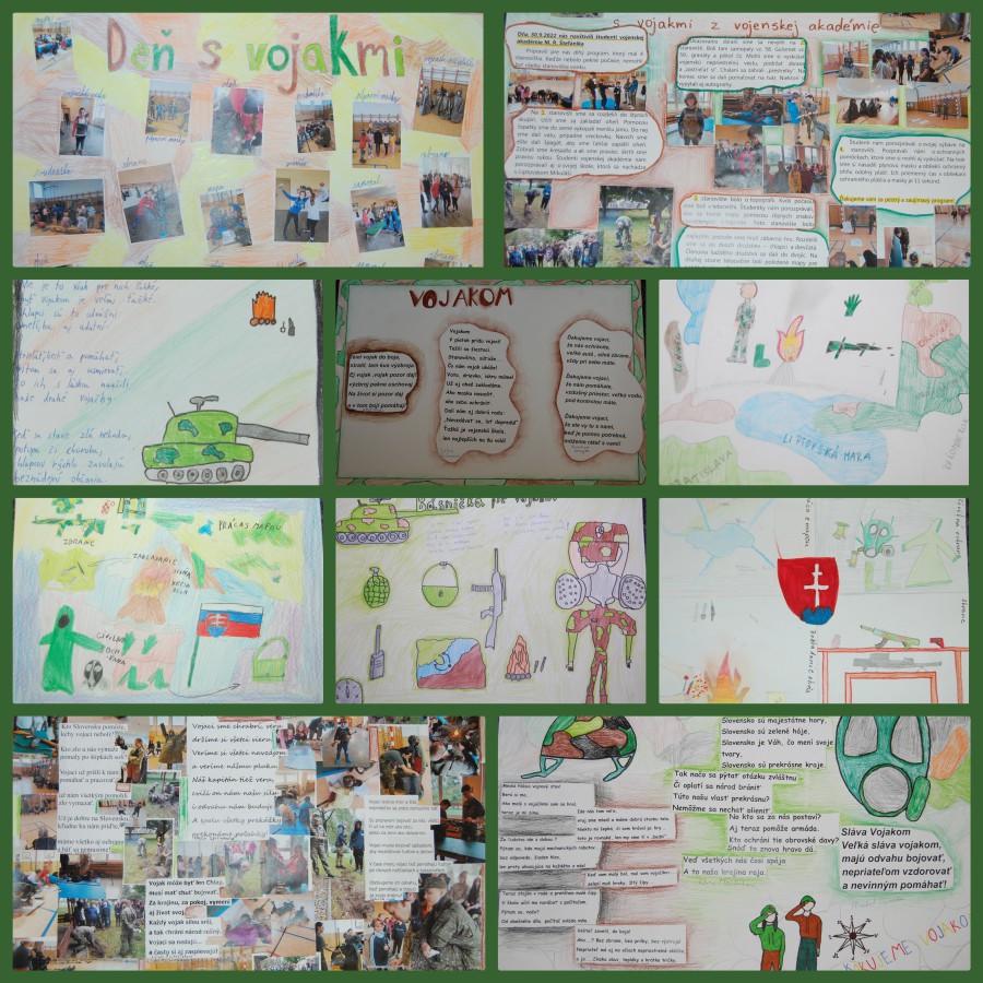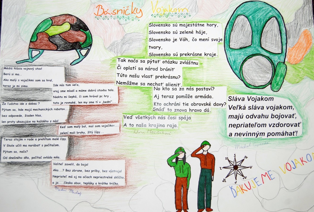 Cvičenie viedli nrtm. Sekan a nrtm. Knižka s desiatimi kadetmi, ktorí žiakov aktívne zapájali do jednotlivých činností, z čoho mali žiaci 2. stupňa veľkú radosť. Ako poďakovanie za aktívnu spoluprácu vytvorili následne na triednických hodinách a výtvarnej výchove básne, kresby i plagáty zachytávajúce zážitky z cvičenia. Tie nám spolu s ďakovným listom od pani riaditeľky poslali na akadémiu, čo nás veľmi milo prekvapilo. Ako nám v ďakovnom liste napísala p. riaditeľka: „Žiaci po cvičení spoločne s učiteľmi diskutovali o prežitých okamihoch s vojakmi a o tom, čo ich najviac zaujalo, čo im cvičenie dalo.“