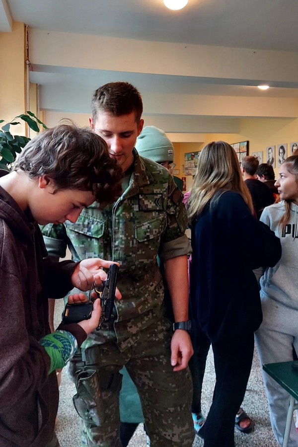 Na základe žiadosti p. riaditeľky Mgr. Anny Kremnickej pripravili žiakom pestrý a zaujímavý program, počas ktorého prezentovali svoju prácu, materiál, zbrane a vojenskú výstroj.