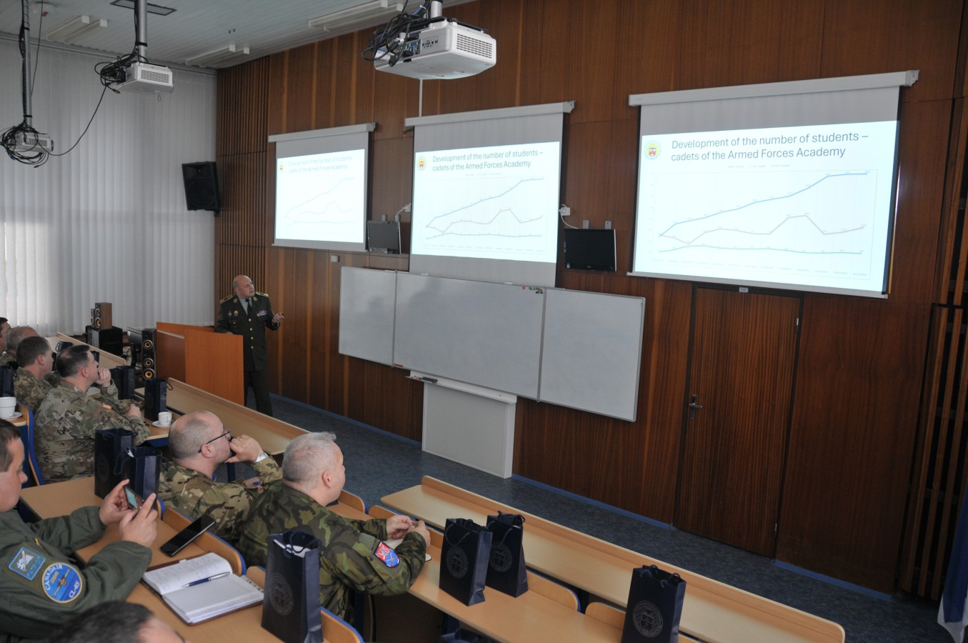 Akadémiu ozbrojených síl (AOS) v Liptovskom Mikuláši navštívila v pondelok 14. apríla delegácia vojenských diplomatov z desiatich krajín Európy, Číny a USA. Vzácnych hostí privítal rektor akadémie brigádny generál Aurel Sabó, ktorý ich oboznámil s poslaním a úlohami jedinej vojenskej vysokej školy na Slovensku.