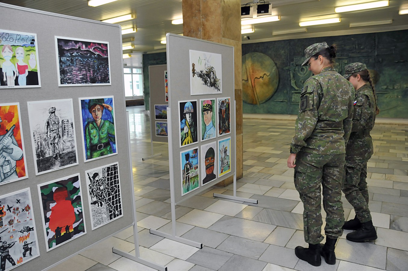 Žiaci vo svojich výtvarných dielach vyjadrili ich vnímanie profesionálnych vojakov, ich prácu, život či plnenie každodenných úloh.
