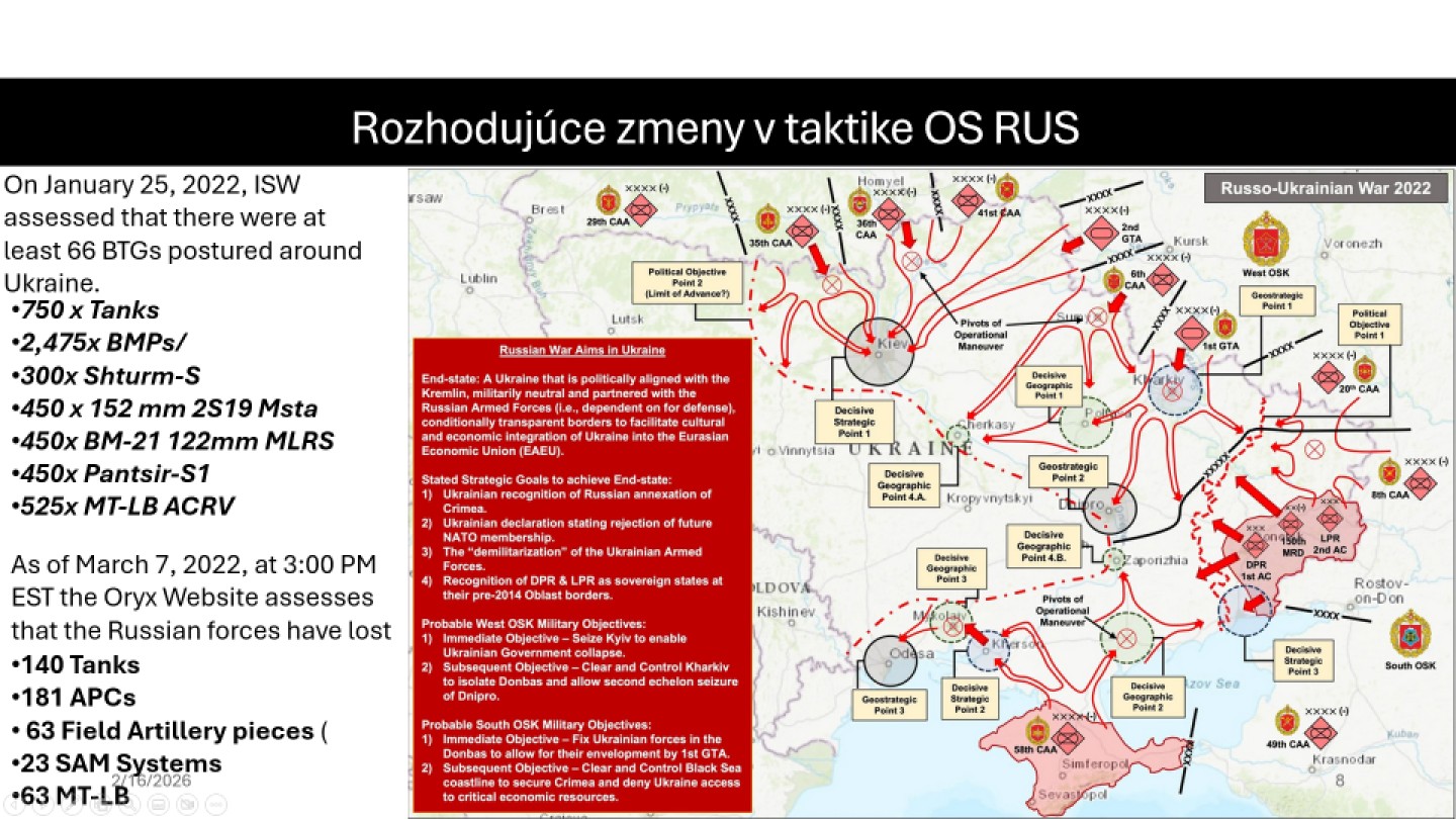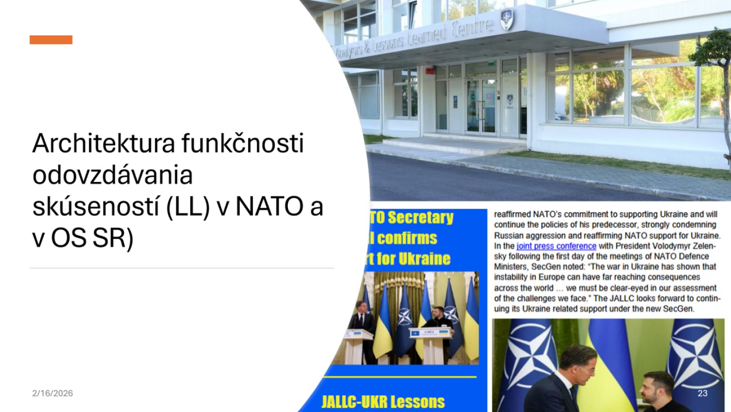 Dňa 6. februára 2026 sa v priestoroch Katedry vojenskej taktiky a operačného umenia v spolupráci s J2 (odbor spravodajstva a elektronického boja) Generálneho štábu Ozbrojených síl SR uskutočnil workshop na tému Ukrajinské bojisko - dopady na jednotky pozemných síl.
